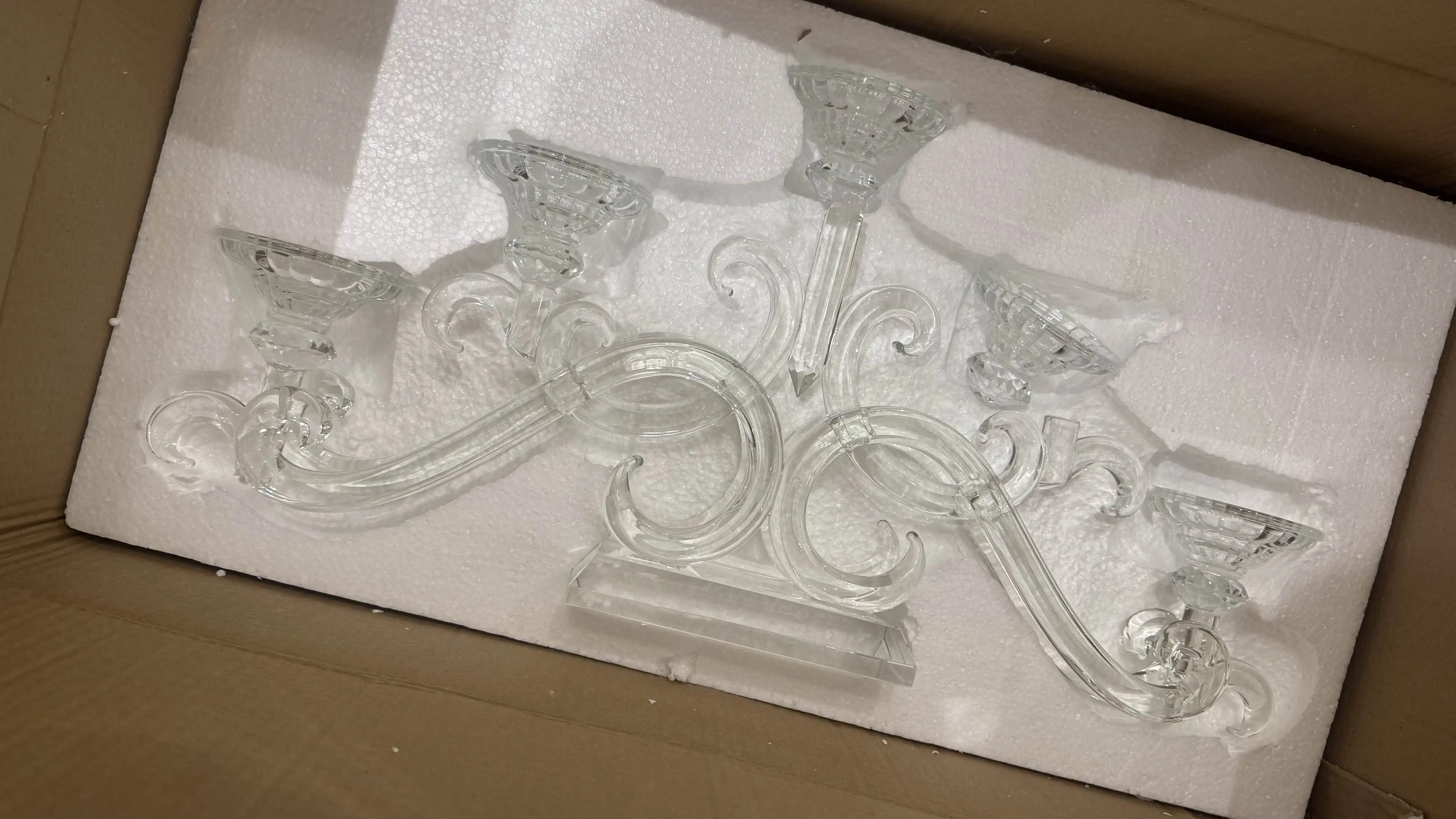 J-108 Crystal Glass Candelabra Centerpieces 5 Arms Tall Candelabra on Sale Candelabri Di Cristallo